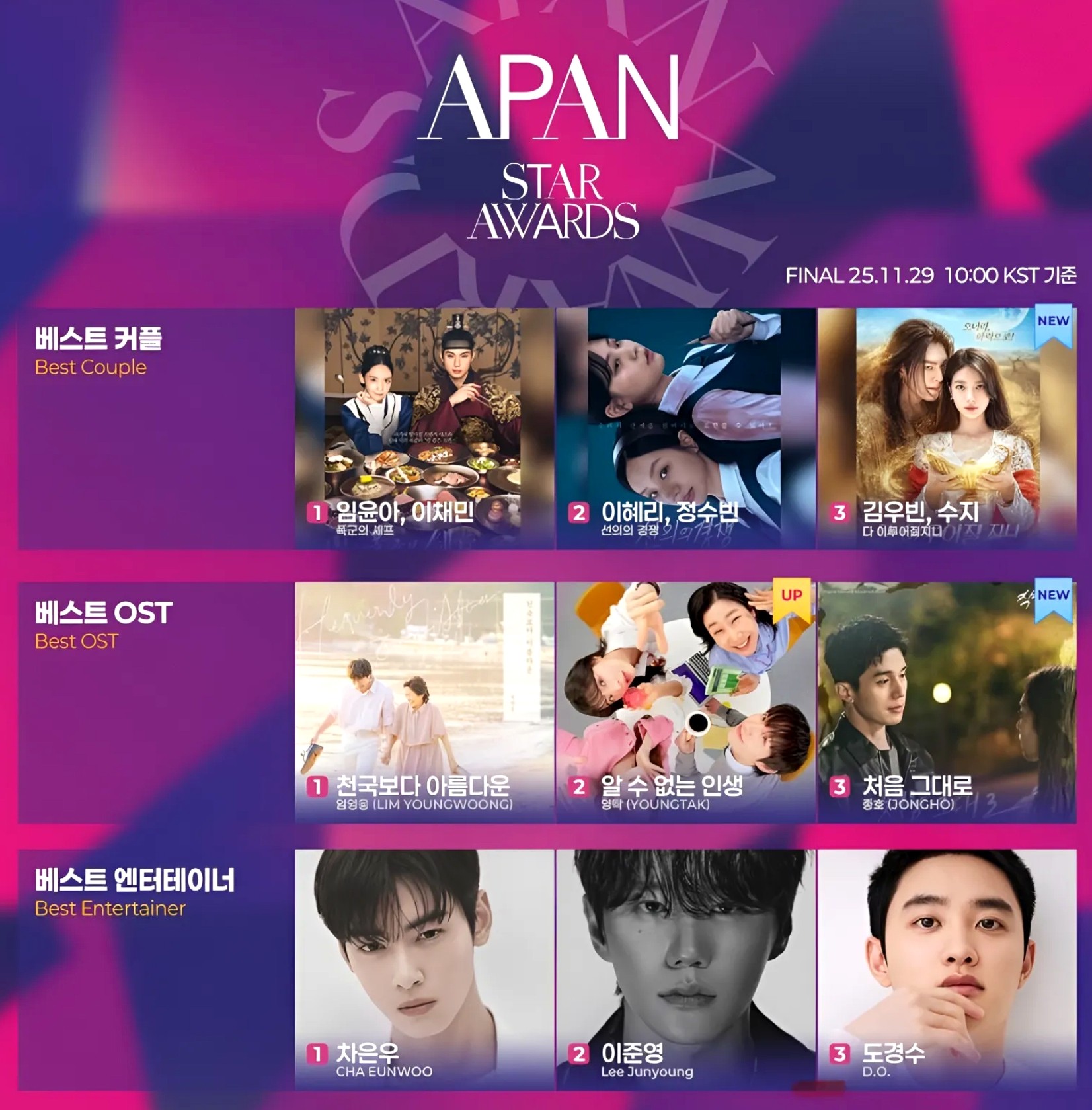 APAN Star Awards 匯集了韓國電視劇行業中具有影響力的演員、導演、編劇及制作團隊,是韓國電視界公信力極高的權威頒獎禮。
