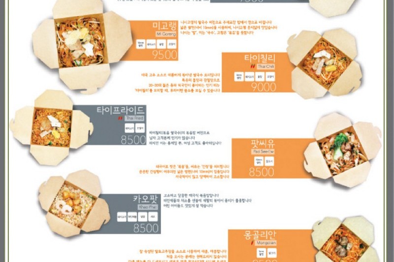 • 泰式辣味炒飯 (Thai Fried Rice (Spicy)):10,800 KRW。泰式辣味炒面 (Thai Chili Noodles) 的炒飯版本。愛吃辣的人必嘗,擁有強大的粉絲基礎。