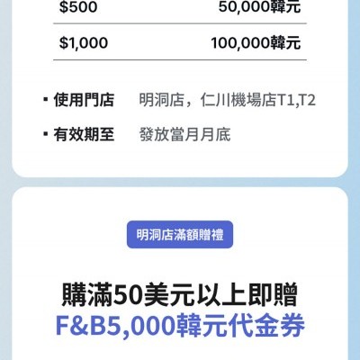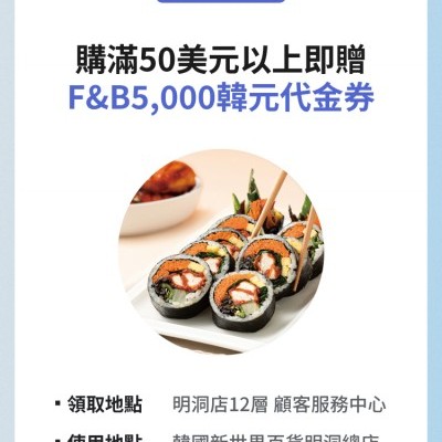 $50 이상 구매 시 신세계면세점 지하 1층 푸드코트 5천원권 증정