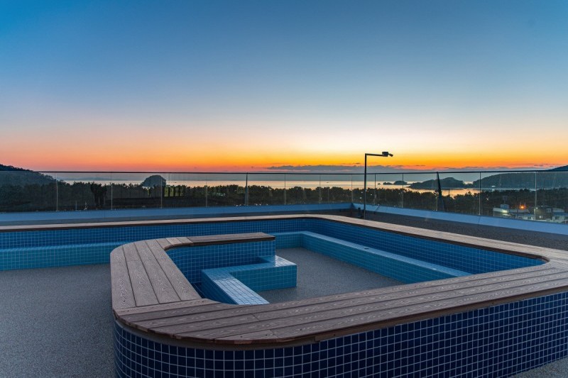 • 海景足浴湯: 在浪漫的戶外露台,一邊用溫暖的岩盤海水泡腳,一邊欣賞夕陽將海面染成金色的壯麗景色。