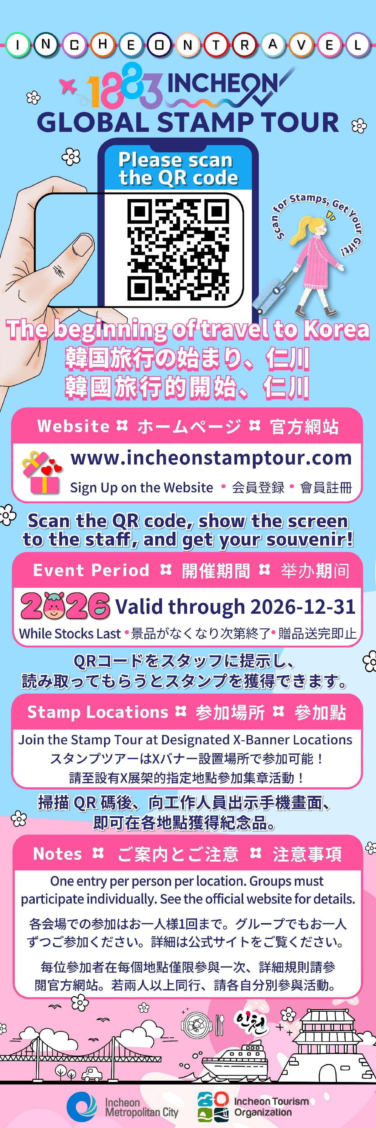 收集蓋章的同時,盡情探索仁川的多彩魅力!期待您的熱情參與,祝您旅途愉快!